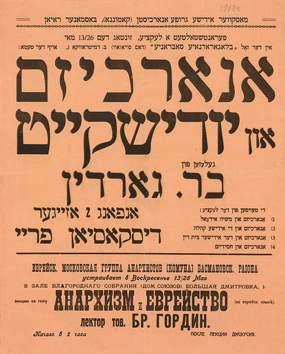 Announcement for talk on Anarchism and Yiddishkayt, Moscow, 1918. (Museum of the Jewish History in Russia)