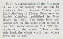 Among the books that came its way in the mid-1940s, was this oddity, Ancient Pictures for Little Moderns of Things Once Seen by Jewish Children, by Frederick Starr, published in New Haven in 1889. The librarians and archivists must have found it as quaint and weird as we do today, though the Yiddish caption in the June 1946 issue of Yedies seems to take it as an ethnographic document on its own terms, pointing out “the characteristic clothing” of the boys in the illustration, newspaper sellers on the Lower East Side.